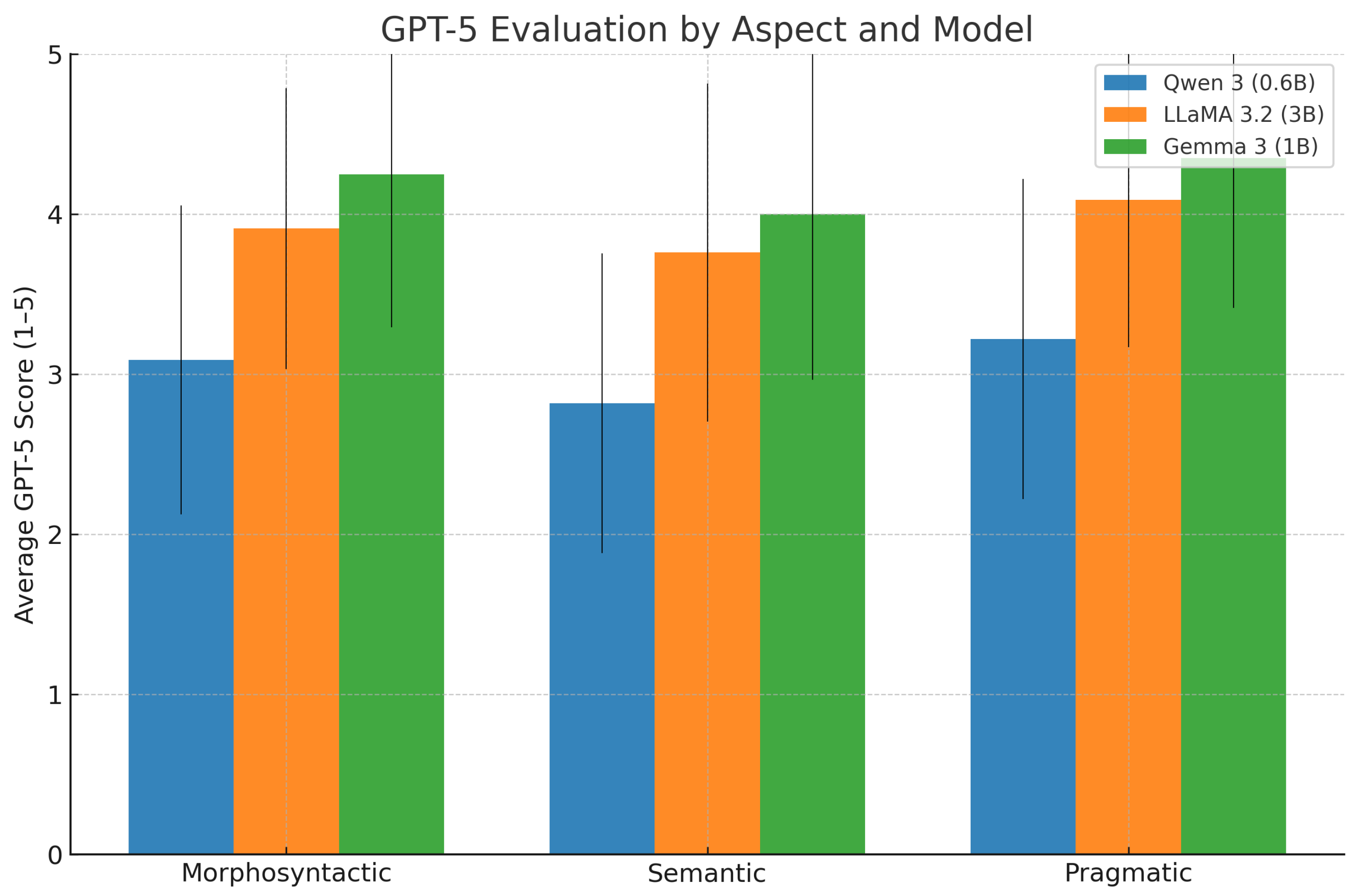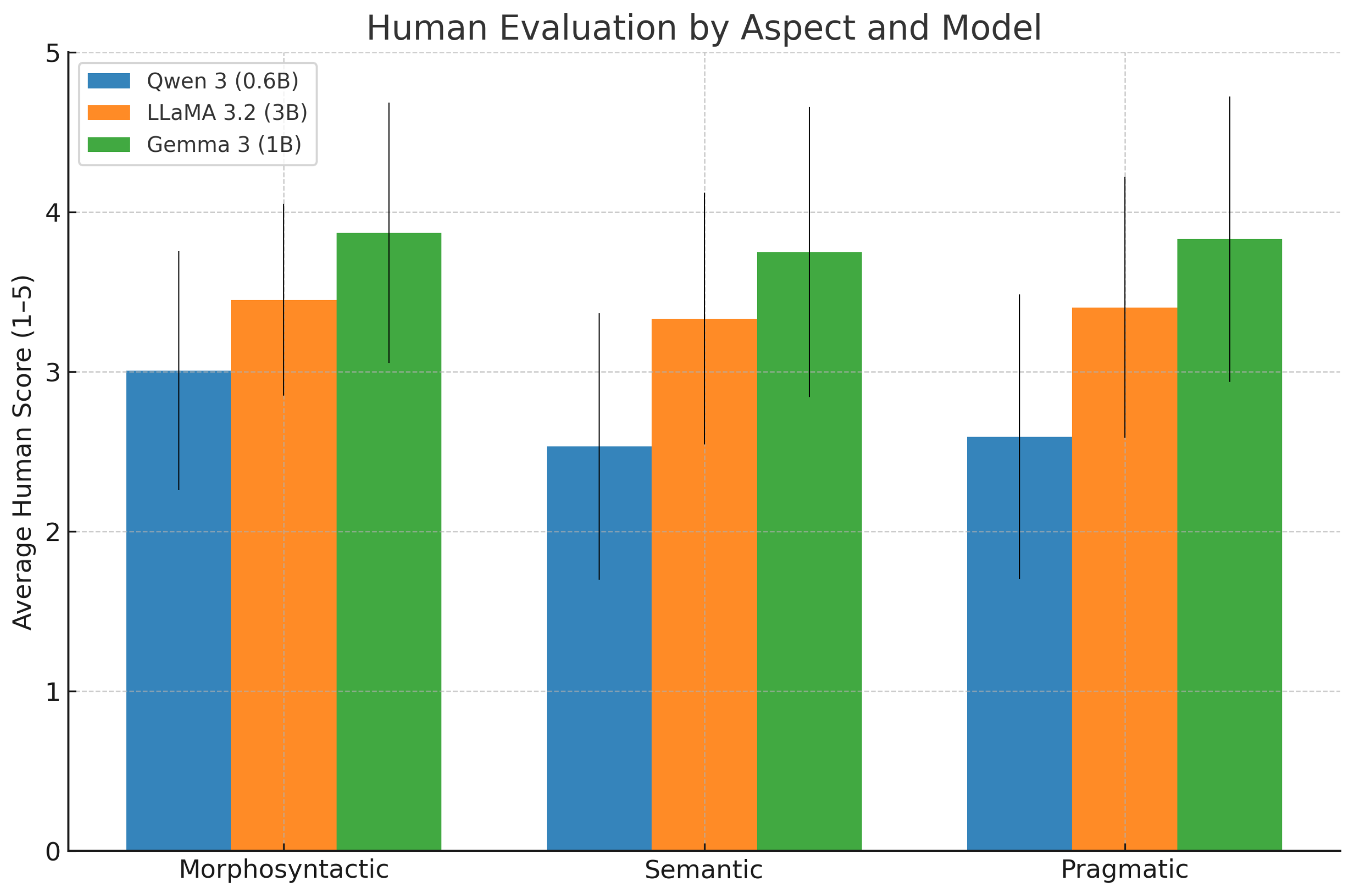 | Gemma 3 (1B) | Morphosyntactic | 3.870 | 0.814 | 4.25 | 0.957 |