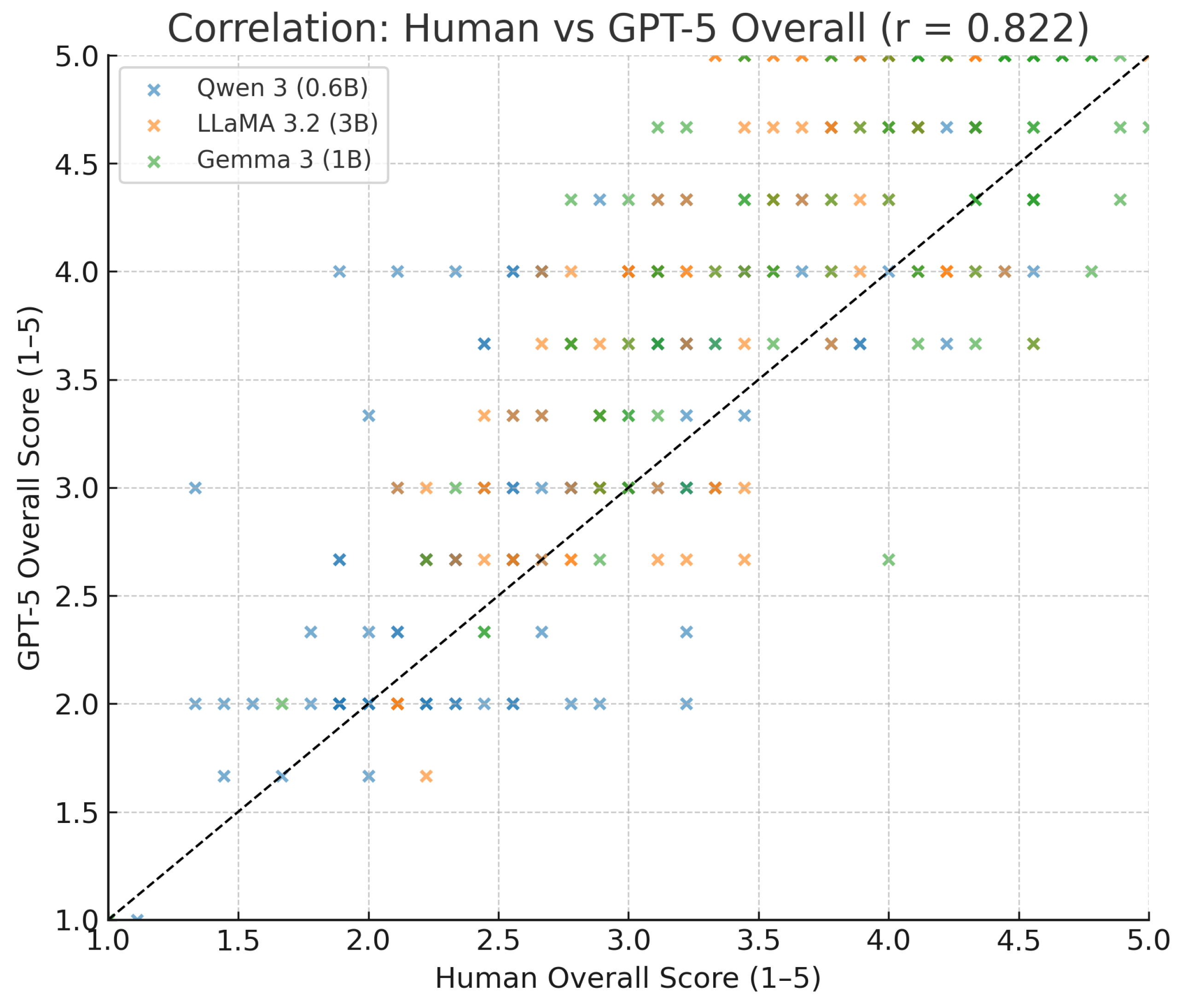 | Gemma 3 (1B) | 3.87 ± 0.81 | 4.25 ± 0.95 | 3.82 ± 0.84 | 4.20 ± 0.88 |