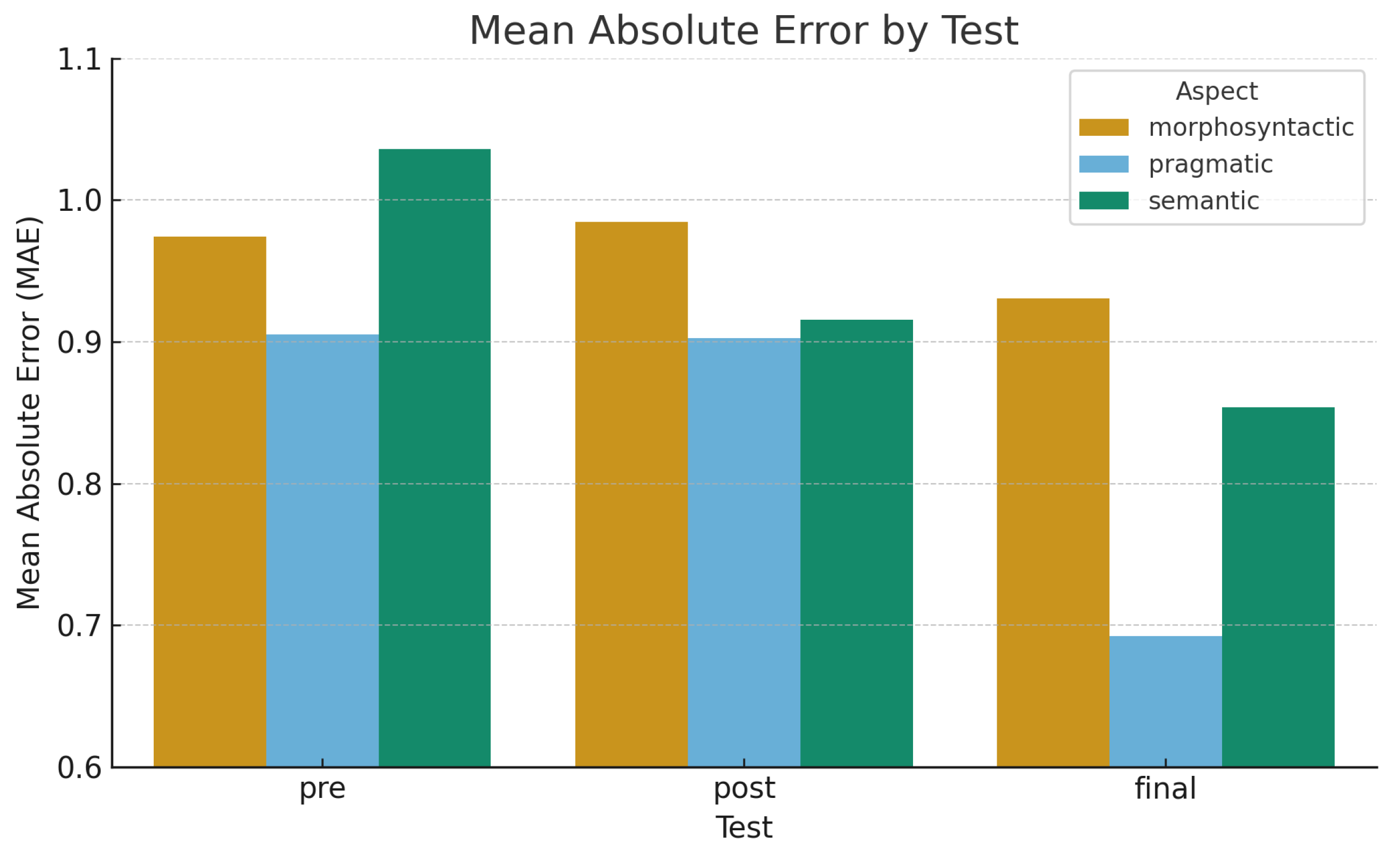 | Morphosyntactic | Assesses grammar, agreement, sentence structure, and morphology; identifies issues like verb conjugation errors, subject–verb disagreement, tense misuse, or malformed clause structure. |