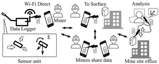 A data logger installed inside an underground mine senses in situ stress, enabling it to be transferred to a mobile device owned by a nearby miner [36]. Such data can then be sent to another miner’s mobile phone using WiFi Direct. In order to develop a differential in situ stress or strain monitoring system, it is necessary to find a suitable device in the market or to develop a measurement unit (sensing), fulfilling the needs of the experiment, in addition to the communication unit.