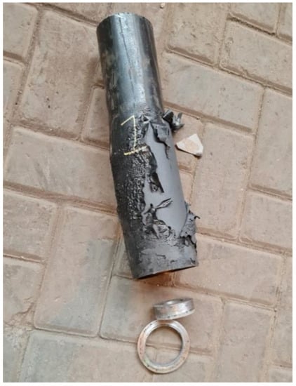 The accepted standard for the yield tonnage of rock reinforcement devices in medium-risk areas is 20 tons. This is the consensus in the mining sector [19]. For mining activities in areas of high risk, the accepted yield tonnage is 35 tons. Figure 24 shows that the mean yield tonnage of the improved bolt was above 20 tons. Even after the dynamic event simulation at 50 mm, it successfully remained above 20 tons. Maintaining strict quality tolerances for the rock bolt allows for successful absorption of 60 kJ of energy, as required. The working principle of the improved yield bolt is based on radially expanding a hollow tube to absorb the energy of seismic activity [4]. The investigation showed that after a dynamic event, tubes failed to maintain their yield tonnage. However, the preliminary design of the yield bolt contained welded components. The effect of welding on the yielding tube decreased the yield strength, the tensile strength, and the impact toughness [32], resulting in a lower tonnage when testing. The high current and voltage during welding allowed defects to be formed in the microstructure of the steel [32]. Welding at lower currents and voltages is impossible because low welding penetration results in a weak joint. The design of the improved yield bolt does not require any welding during manufacture, as shown in Figure 23. This is also advantageous for transportation, as components can be transported separately and assembled underground; thus, many yield bolts can be transported per shift.