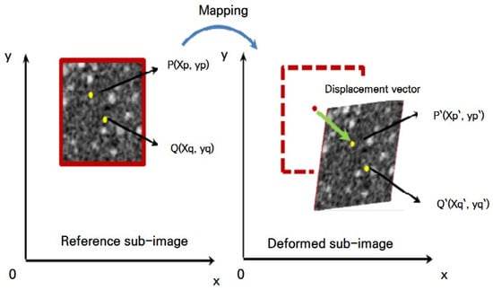 Schematic diagram for correlating the images of a reference subset before deformation and a target (or deformed) subset after deformation.
