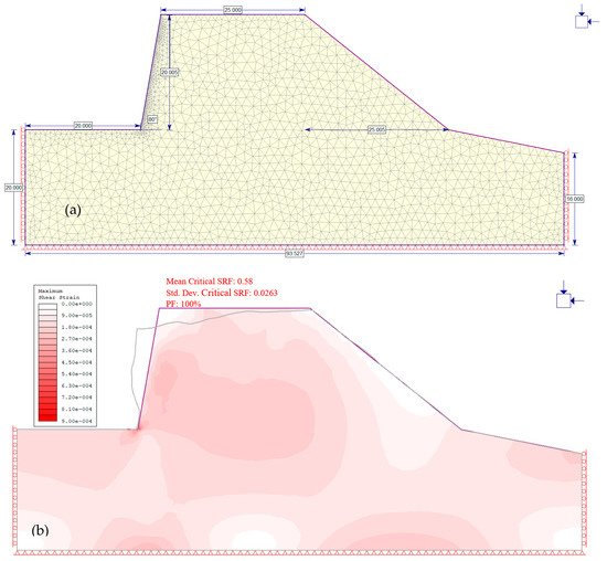 - Hammah, R.E.; Yacoub, T.E.; Corkum, B.C.; Curran, J.H. The Shear Strength Reduction Method for the Generalized Hoek-Brown Criterion. In Proceedings of the 40th US Symposium on Rock Mechanics (USRMS), Anchorage, AK, USA, 25–29 June 2005. [Google Scholar]