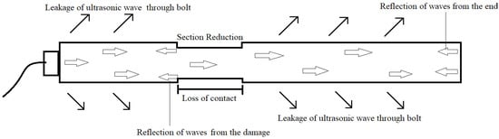 Figure 4. Transmission, reflection, and leakage of the ultrasonic wave pulse through a bolt.
