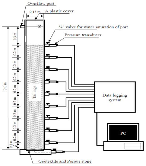 Wickland and Wilson [101] and Ou et al. [99] have conducted several self-weight column tests in which slurried deposition is deposited in a column by permitting downward drainage at the bottom of slurried depositions, without the use of any external hydraulic or mechanical triggers. These test techniques may thus be regarded as more suited for assessing the behavior of self-weight consolidation of slurry deposition.