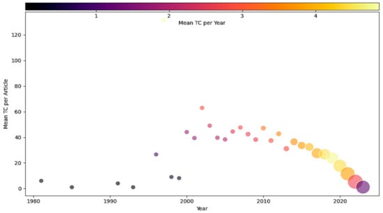 Bibliometric analysis is a valuable tool for exposing publication patterns and providing an objective assessment of the state of research and the development process in different countries, scientific research institutions, or for different authors within specific fields []. Bibliometric methods examine the underlying knowledge structures within academic literature and present the results in a graphical form to provide a more comprehensive analysis of the field in question. Bibliometrix, created by Massimo Aria and Corrado Cuccurullo in 2017 [], is a widely used R language package for bibliometric analysis and graphical representation of scientific data [].