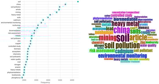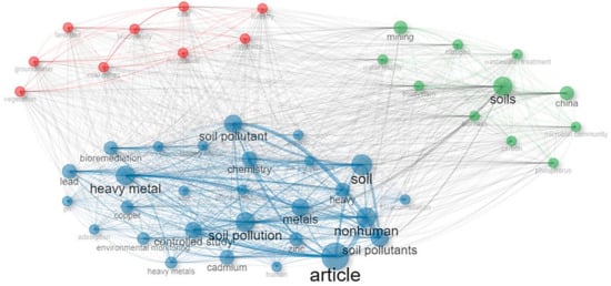 Notably, the high-frequency keywords encompassed crucial terms such as “soil”, “China”, “mining”, “soil pollution”, “heavy metal”, “environmental monitoring”, “cadmium”, and “bioremediation.” The presence of these keywords reflects their relevance to global ecological reclamation research.