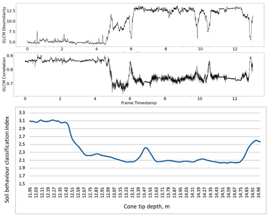 GLCM texture correlation and dissimilarity in comparison with soil behaviour classification index.