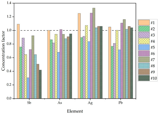 | Pb | S | Ag | Fe | SiO2 | Zn | Sb | Sn | As | Bi |