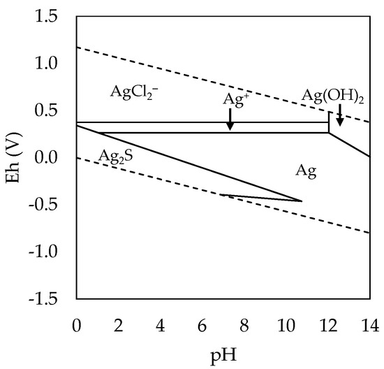 - Briones, R.; Lapidus, G.T. The leaching of silver sulfide with the thiosulfate-ammonia-cupric ion system. Hydrometallurgy 1998, 50, 243–260. [Google Scholar] [CrossRef]