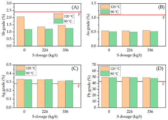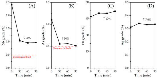 3.2. Effect of Variables in the Sulfur Digestion–Leaching Technique for Eliminating As and Sb from a Pb-Ag Concentrate