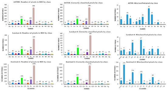 Pixel classification comparison for different sensors: ASTER, Landsat-8, Sentinel-2.