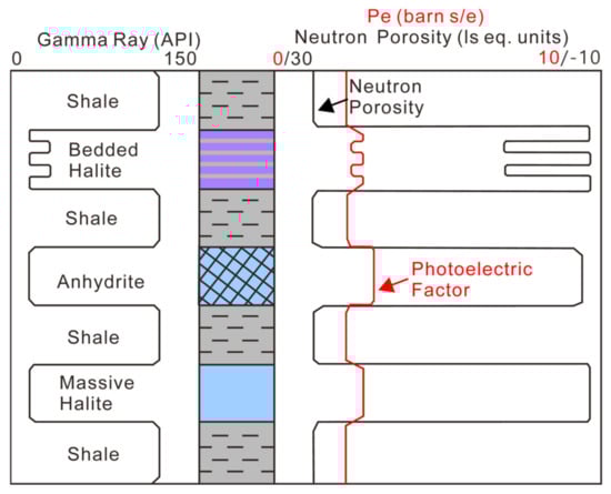 - Kansas Geological Survey. Geological Log Analysia. Available online: https://www.kgs.ku.edu/Publications/Bulletins/LA/07_evaporites.html (accessed on 9 July 2024).
