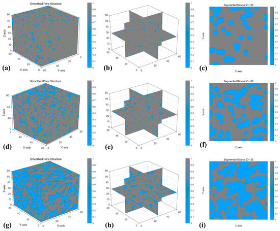 In summary, the I-QSGS can generate a three-dimensional porous media model that is more in line with the actual rock pore characteristics by introducing a more detailed directional growth and pore distribution adjustment mechanism. This method can better simulate the microscopic pore structure of rock and provide strong support for the analysis of pore structure and the study of underground hydrogen storage and transmission performance.