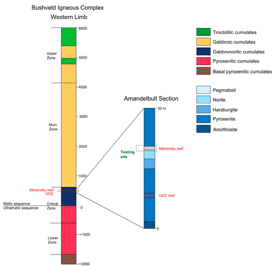 - Eales, H.V.; Cawthorn, R.G. The Bushveld Complex. Dev. Petrol. 1996, 15, 181–229. [Google Scholar] [CrossRef]