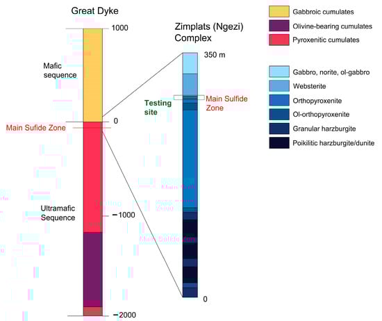 - Oberthür, T. Platinum-Group Element Mineralization of the Main Sulfide Zone, Great Dyke, Zimbabwe. In Magmatic Ni-Cu and PGE Deposits: Geology, Geochemistry, and Genesis; GeoScienceWorld: Littleton, CO, USA, 2019. [Google Scholar] [CrossRef]