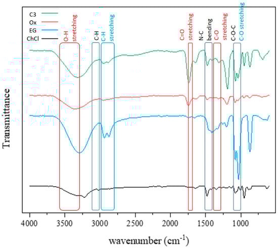 FTIR spectra of the components of the ChCl-EG-Ox solvent (C3).