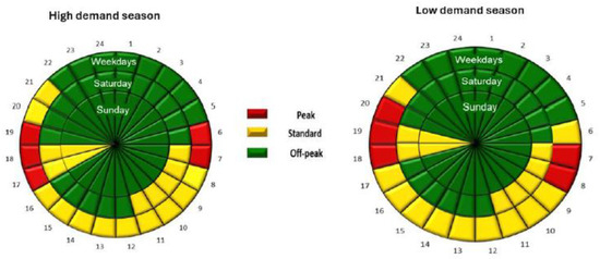 Figure 1 shows the hourly distribution of the Eskom TOU peak-, standard- and off-peak periods for the two billing seasons, namely high demand (June to August) and low demand (September to May).
