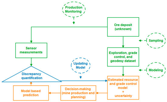 Closed-loop workflow for real-time resource and grade control management in mining operations (adapted from after Benndorf [6]).