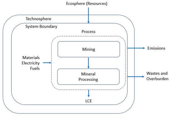 The study estimated the contribution of a lithium mineral concentrate from lithium-bearing pegmatites in Brazil to global warming, and the results were expressed as lithium carbonate equivalent—LCE. This estimate was carried out using a life cycle approach, which covered the steps of lithium ore processing from mining to the gate of the mineral processing plant. Based on this approach, a product system was proposed, and a life cycle inventory was carried out to account for inputs and outputs of raw material, materials, and energy using data publicly available from companies operating in the country.