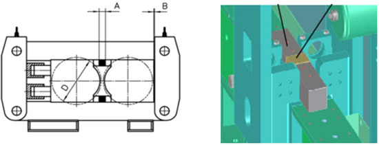 An HPGR630/17 device was installed in the crushing unit of a selected production line. The nominal capacity of the machine is 1230 t/h. The diameter and length of the rolls are 1760 and 1230, respectively, and their maximum rotational speed is 23.00 rpm (nominal 19, 43). Each roll unit consists of the shaft, tire, and bearing blocks.