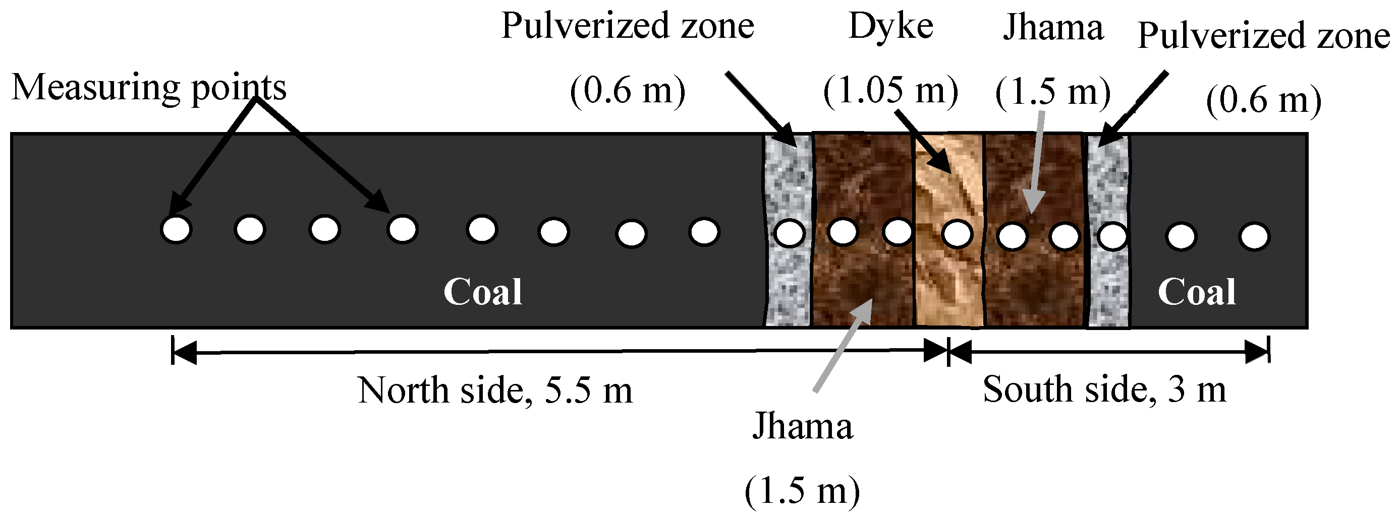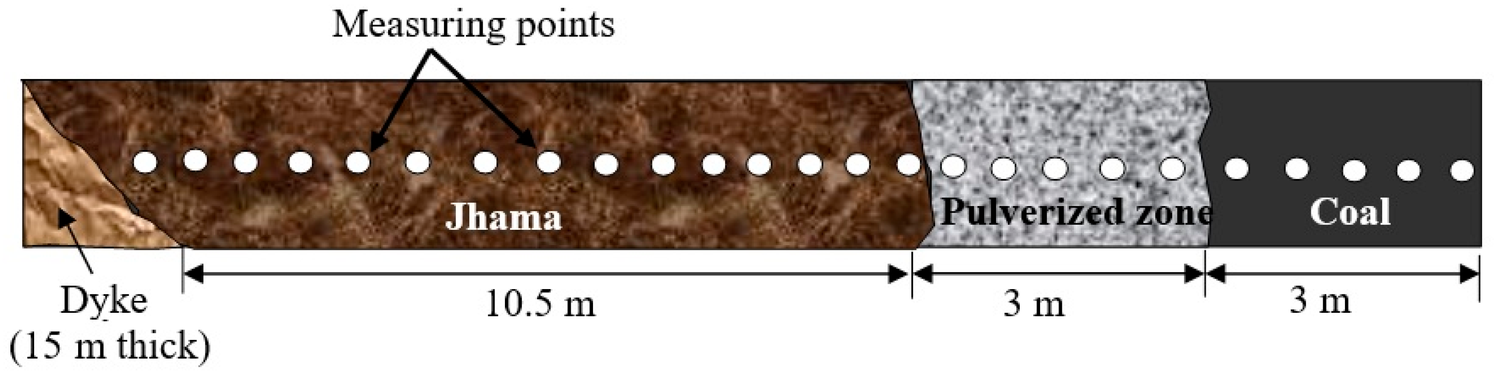 1], which create strata control problems during mining. An igneous intrusion in the form of a dyke is one of the geological discontinuities, which converts the surrounding coal mass into jhama and pulverized zones during its formation [