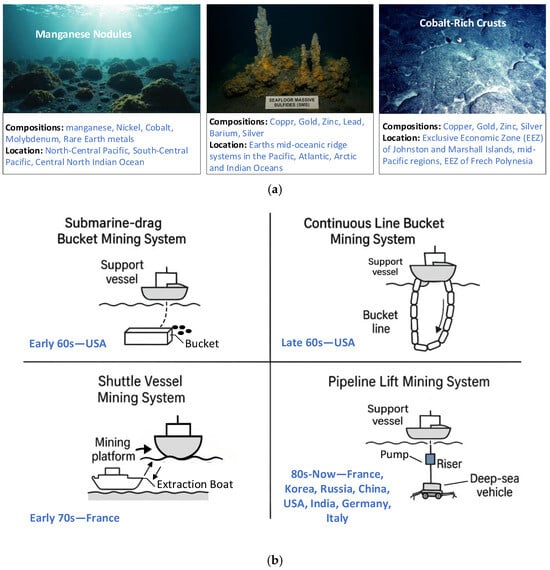 (a) The primary deep-sea deposits, their mineral composition and respective morphology, and (b) deep-sea mining systems development (modified from []).