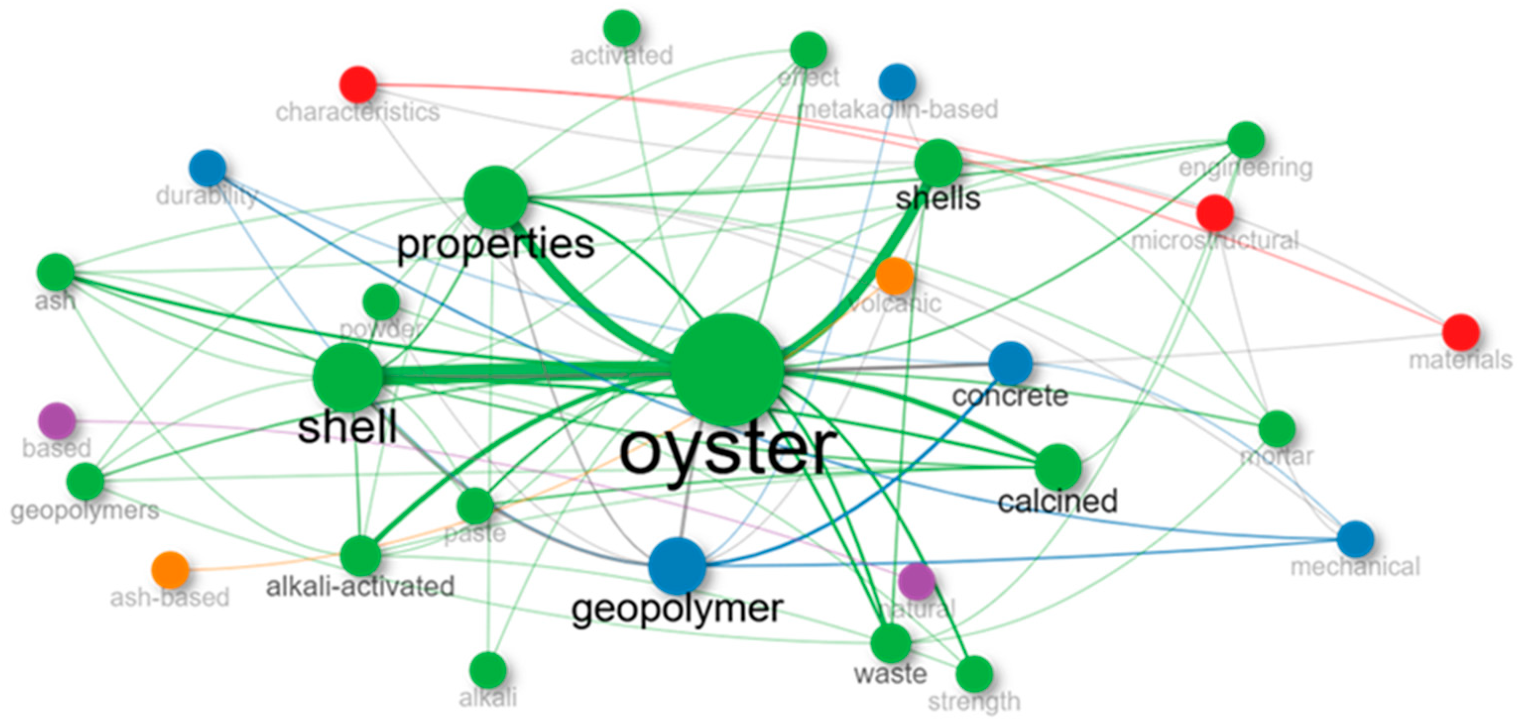 | “Oyster” | AND | “alkali-activated” OR “alkali-activation” OR “geopolymers” OR “geopolymer” | Article Title, Keywords and Abstract | 21 | 29 |