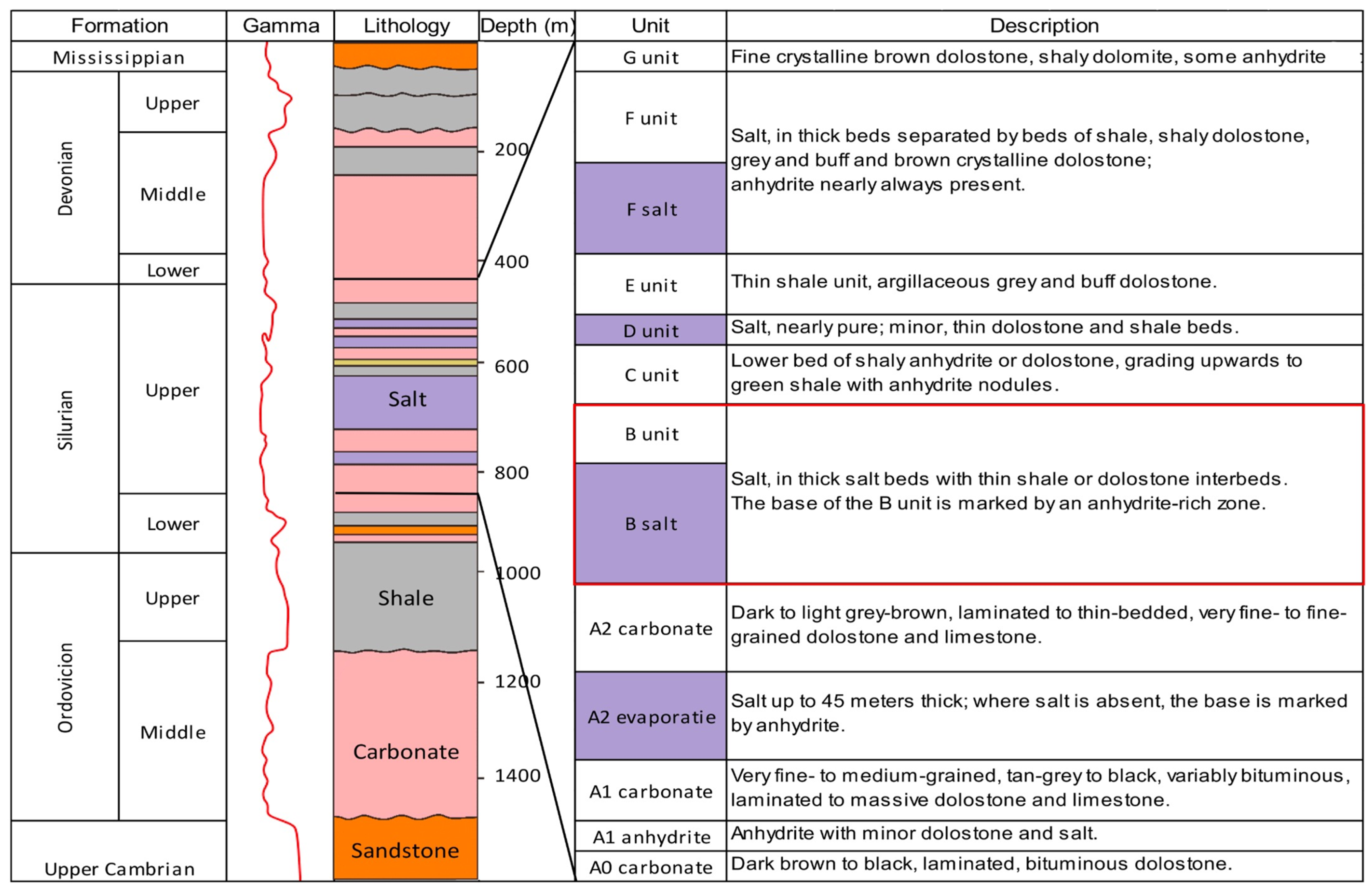 Figure 1 demonstrates the detailed lithology distribution of the Salina Formation.