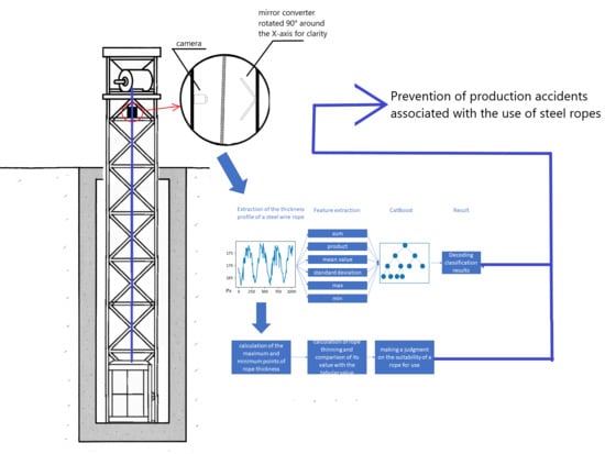 - Zhou, P.; Zhou, G.; Zhu, Z.; He, Z.; Ding, X.; Tang, C. A Review of Non-Destructive Damage Detection Methods for Steel Wire Ropes. Appl. Sci. 2019, 9, 2771. [Google Scholar] [CrossRef]