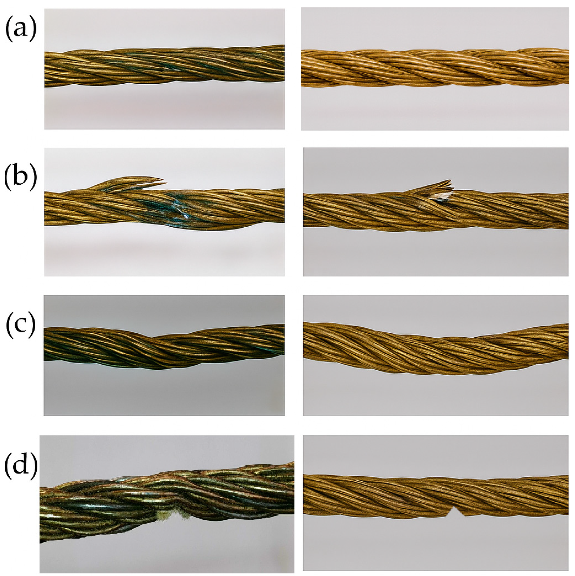 - Real images acquired in controlled laboratory conditions using a calibrated optical setup. These images capture industrial steel ropes in intact condition and with visually discernible surface defects.