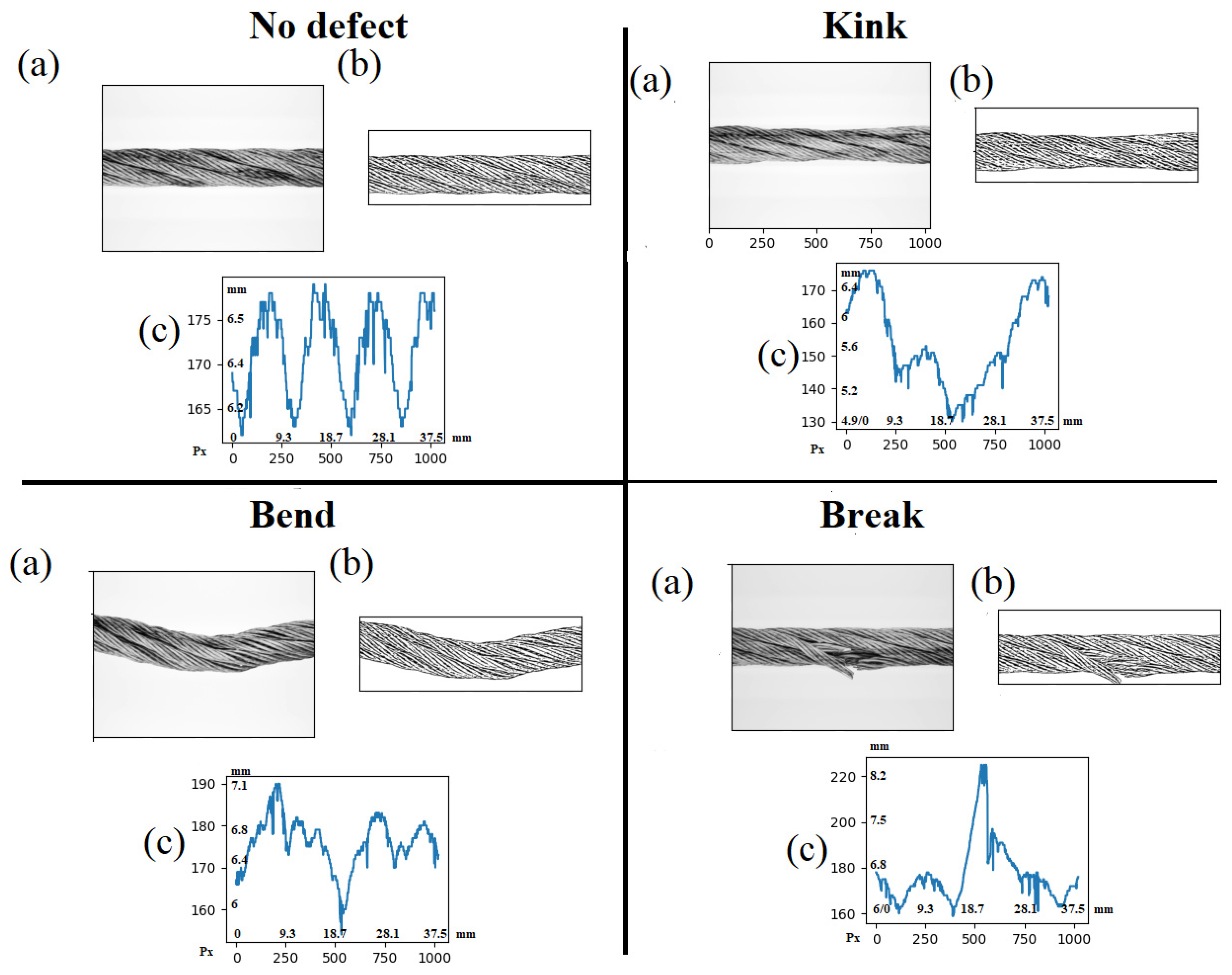 - Li, P.; Cao, G. Wire rope lay length measurement based on DT-CWT. Measurement 2025, 256, 118041. [Google Scholar] [CrossRef]
