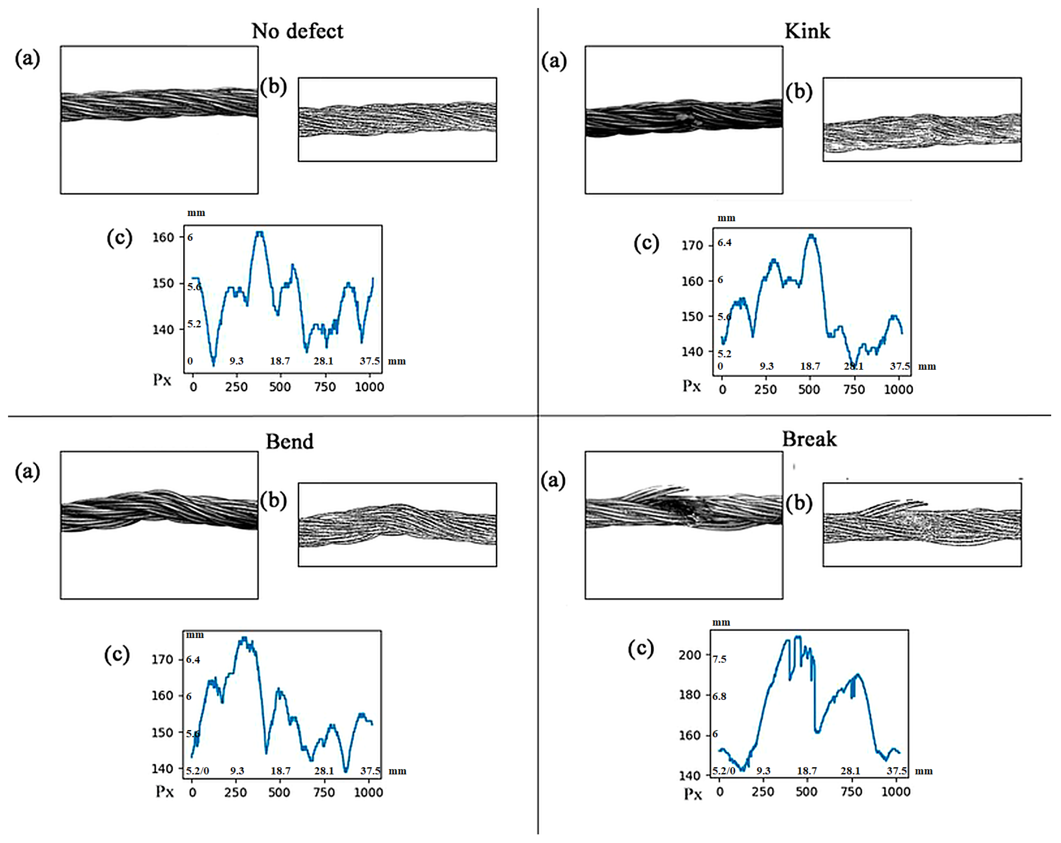 - accurate detection of macroscopic deformations corresponding to visually discernible defects such as kinks, bends, and breaks.