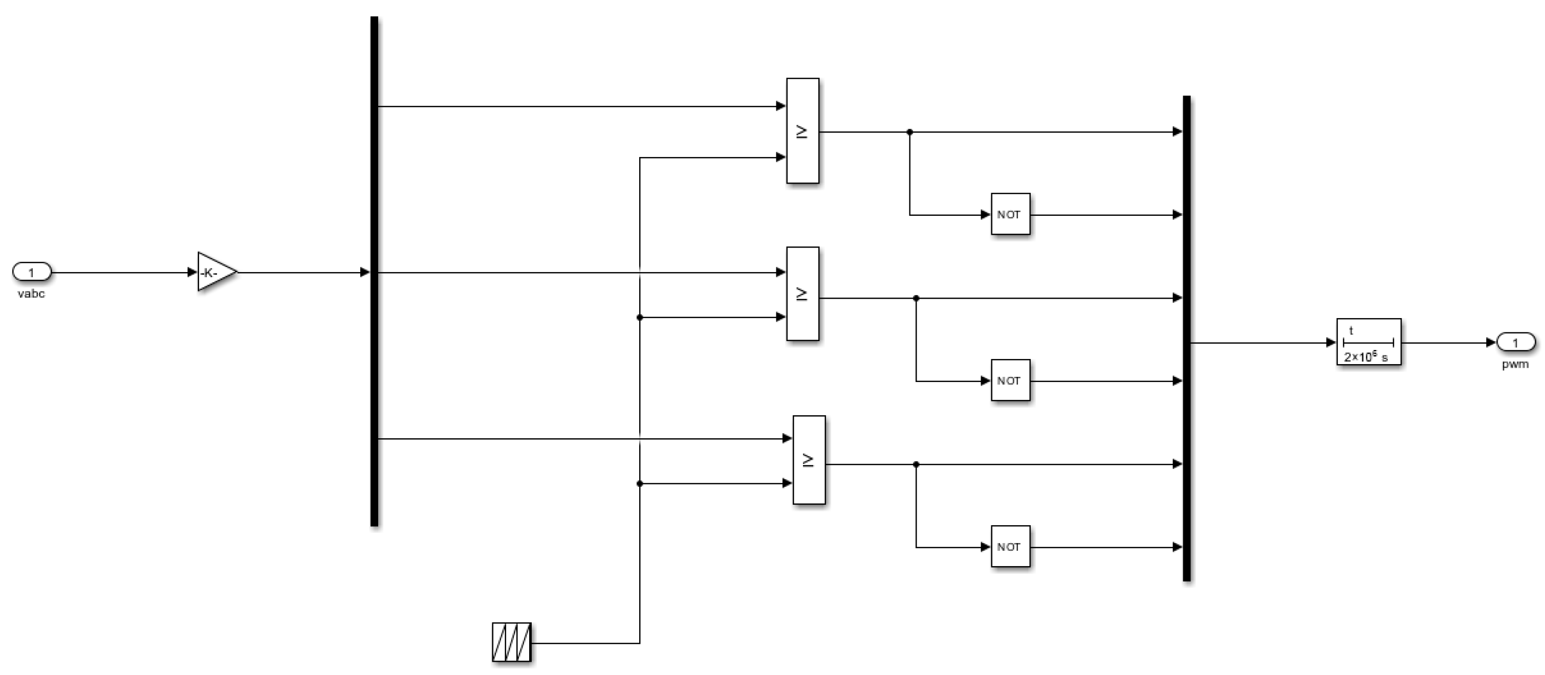 Figure 6 converts the transformed voltage into a PWM wave, which is then used as the input signal for the Permanent Magnet Synchronous Motor (PMSM).