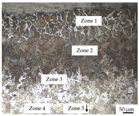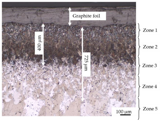 - zone 4–5: recrystallized ferrite followed by grain growth (corresponding to iron).