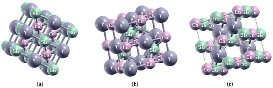 The optimized crystal structure of CoYSb (Y = Cr, Mo, and W) for (a) Type-I, (b) Type-II, and (c) Type-III.