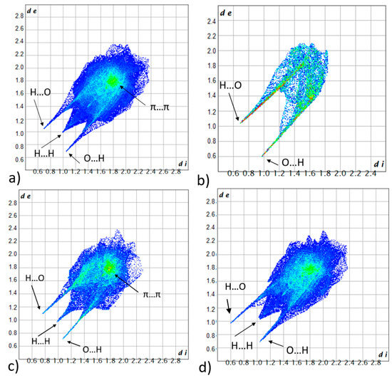 Overall 2D fingerprint plots of (a) the cocrystal and individual components (b) water, (c) THP, (d) ENT.