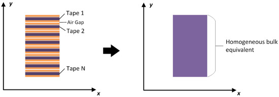 - Zermeno, V.M.R.; Abrahamsen, A.B.; Mijatovic, N.; Jensen, B.B.; Sørensen, M.P. Calculation of alternating current losses in stacks and coils made of second generation high temperature superconducting tapes for large scale applications. J. Appl. Phys. 2013, 114, 173901. [Google Scholar] [CrossRef]