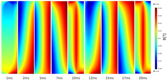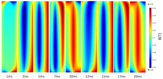 - Lousberg, G.P.; Ausloos, M.; Geuzaine, C.; Dular, P.; Vanderbemden, P.; Vanderheyden, B. Numerical simulation of the magnetization of high-temperature superconductors: A 3D finite element method using a single time-step iteration. Supercond. Sci. Technol. 2009, 22, 055005. [Google Scholar] [CrossRef]