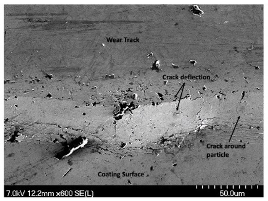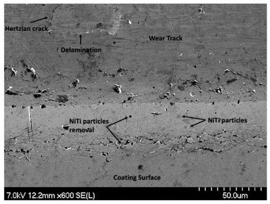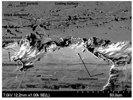 Image of Particle-Crack Interaction on the 100 Pass Wear Track on the 4 μm Thick Ni-P-NiTi Coating.