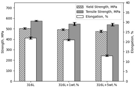 - Yin, X.; Zhai, Q.; Zhang, Q.; Wang, K.; Meng, L.; Ma, Z.; Chen, G.; Wang, S.; Wang, L. Effect of tungsten particles on microstructure and properties of 316 L stainless steel manufactured by selective laser melting. J. Manuf. Process. 2021, 68, 210–221. [Google Scholar] [CrossRef]