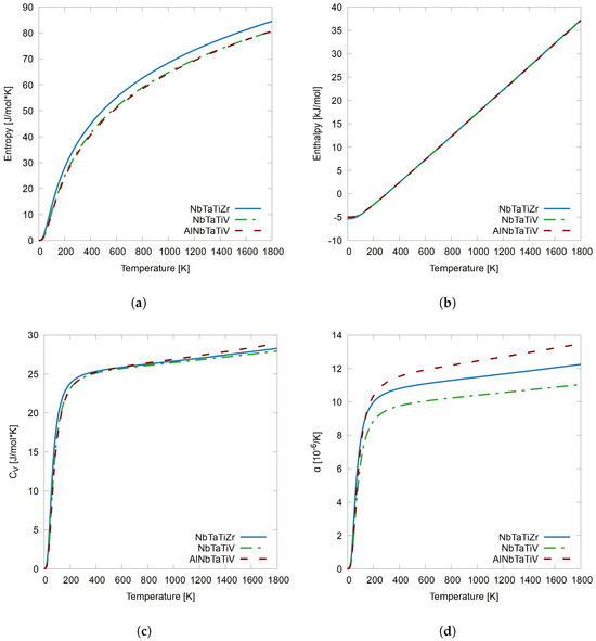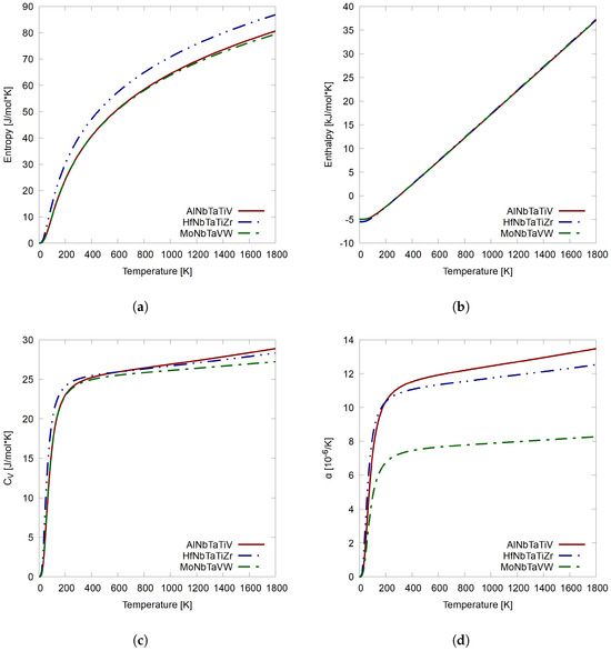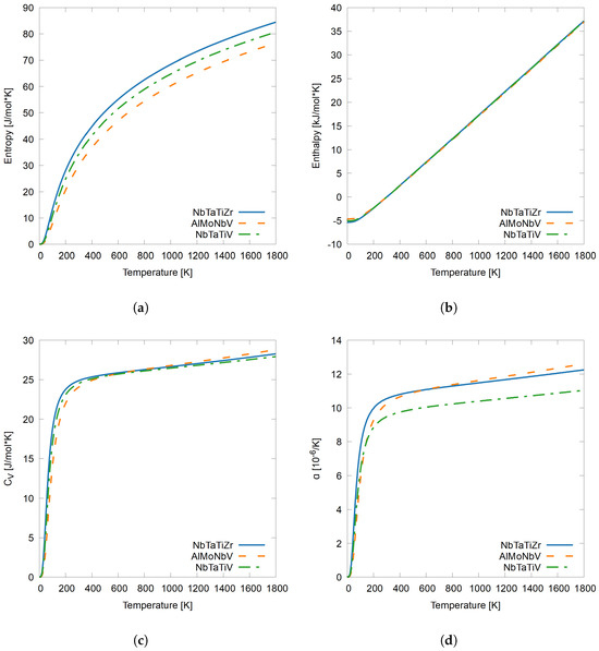 Moreno, D.E.; Hargather, C.Z. Thermodynamic Properties as a Function of Temperature of AlMoNbV, NbTaTiV, NbTaTiZr, AlNbTaTiV, HfNbTaTiZr, and MoNbTaVW Refractory High-Entropy Alloys from First-Principles Calculations. Solids 2023, 4, 327-343. https://doi.org/10.3390/solids4040021
