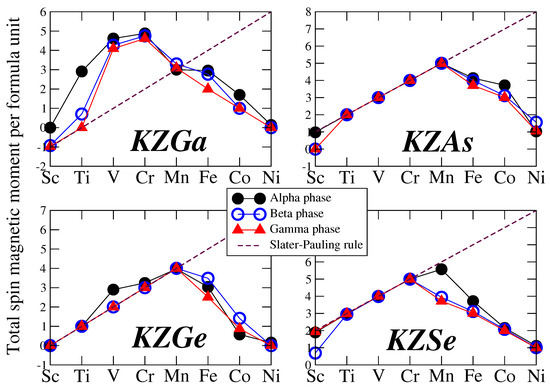 - Özdoğan, K.; Galanakis, I. Interplay between Structural, Electronic, and Magnetic Properties in the p0-d Semi-Heusler Compounds: The Case of Li-Based Compounds. Crystals 2024, 14, 693. [Google Scholar] [CrossRef]