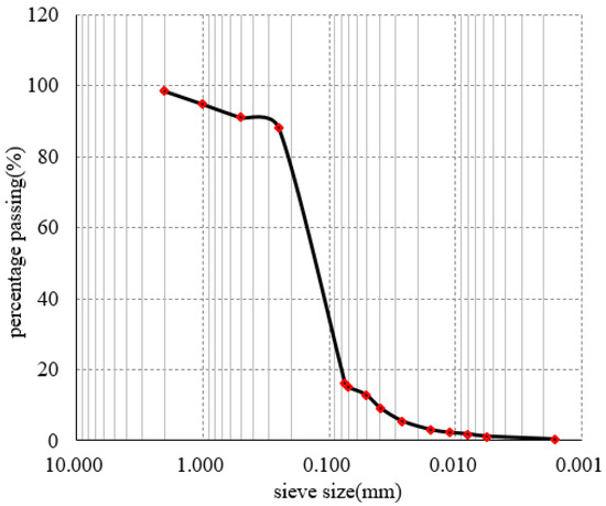 Particle size distribution curve of tungsten tailings.