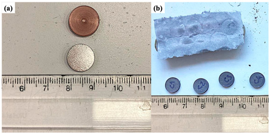 (a) A sample of the pellet and (b) sintered and homogenized CuAlMnFe alloys.