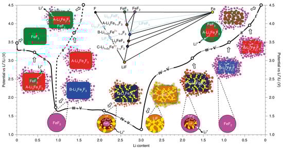 Conversion reactions of FeF3 cathode during charge/discharge process. Reproduced with permission. Copyright 2021, Springer Nature [61].