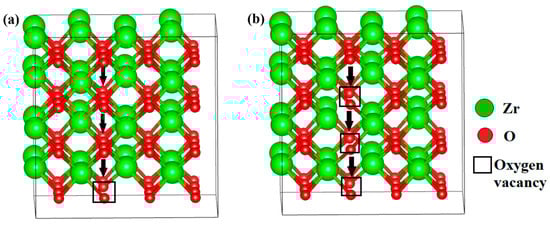 - Perevalov, T.V.; Islamov, D.R. Oxygen polyvacancies as conductive filament in zirconia: First principle simulation. ECS Trans. 2017, 80, 357–362. [Google Scholar] [CrossRef]