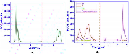 DOS (a) and PDOS (b) of Zr31Mg1O63.