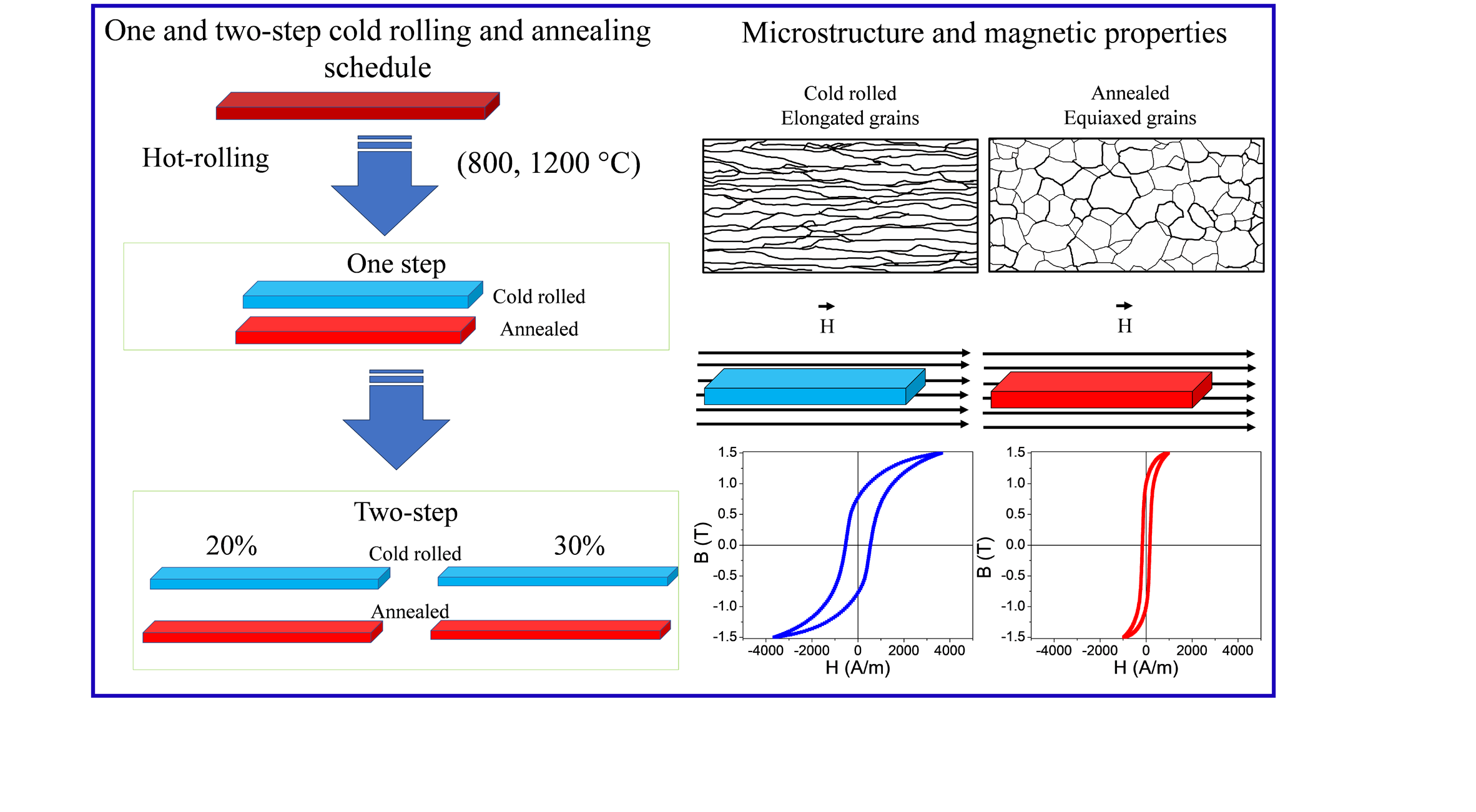 28]. These results suggest that the two-step cold rolling and annealing schedule enhances the magnetic properties of these materials with a significant reduction in processing time (