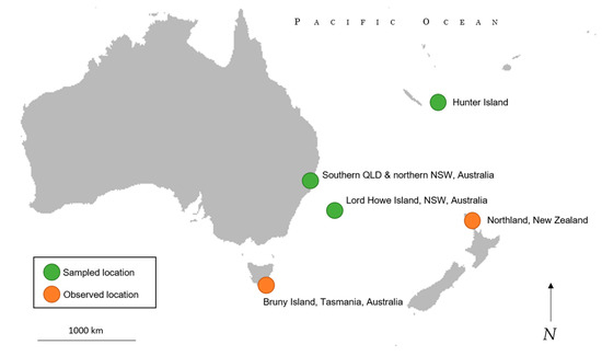 - Nimbs, M.J.; Willan, R.C.; Smith, S.D. Is Port Stephens, eastern Australia, a global hotspot for biodiversity of Aplysiidae (Gastropoda: Heterobranchia)? Molluscan Res. 2017, 37, 45–65. [Google Scholar] [CrossRef]